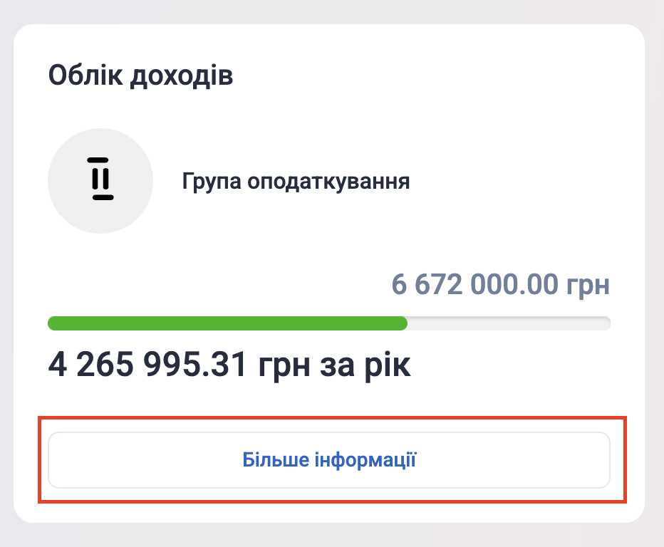 2. У блоці Облік доходів натисніть «Більше інформації» — відкриється розширений перегляд доходів.