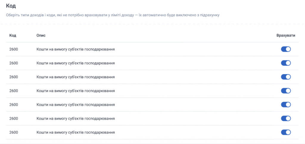 У «Вчасно.Звіт» можна виключити окремі види доходів із ліміту. Наприклад: